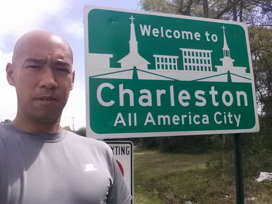After taking a quick stroll around the grounds, I hit the road to Charleston. It didn’t take long for the grass shoulders to transform into cement sidewalks. Once that happened, I picked up some momentum. I only slowed my stride when I found Crystal parked by a church. There she informed me that I had an interview scheduled with channel 4 news, the local ABC affiliate.
